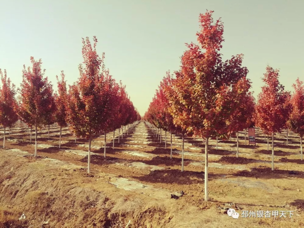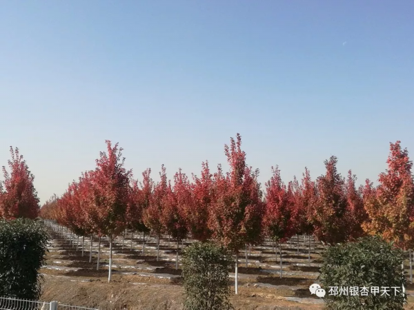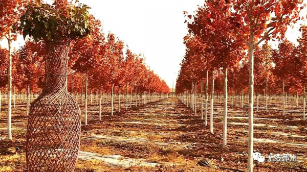 近年来,陈楼镇在公共空间治理过程中,回收并整理了南京路西侧的荒地共1000亩,统一发包后,积极引导种植“三化”树种,统一种植了6万多棵“十月光辉”,在种植之初采用经纬仪定位,无论从哪一棵枫树放眼望去,都是横竖成排。