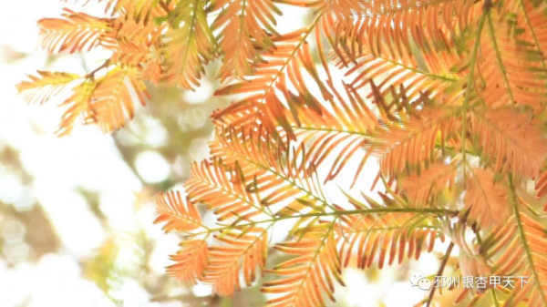 时下,在长江路、邳苍路两旁,大片水杉林染上了红黄的色彩,数千棵水杉树如一队队士兵坚守,一片片、一簇簇,层叠排开、错落有致,生机勃勃而又诗情十足,让人仿若置身于油画中。