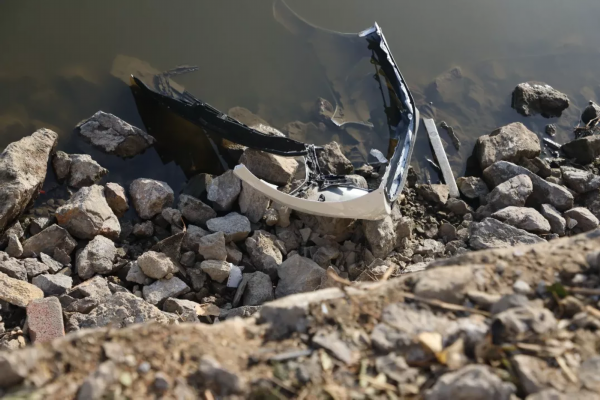 11月15日晚上7点多,位于徐州市经济技术开发区徐庄镇境内的S323省道徐庄收费站由西向东方向,几辆车正在排队缴费,突然一辆白色现代领动轿车快速驶来。“砰砰”两声巨响,白色轿车撞到前方汽车,又失控冲塌道路南侧的路基,一头扎进了漆黑的河道。