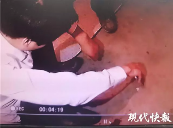 △ 男子在岳母家门口口吐 " 鲜血 "。警方供图