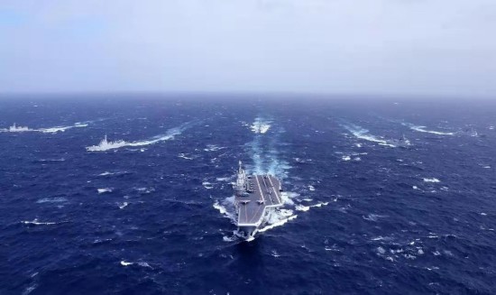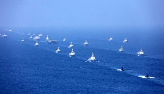 △2018年4月12日,中央军委在南海海域隆重举行海上阅兵,辽宁舰和多艘水面舰艇组成的航母打击群首次亮相,场面震撼。