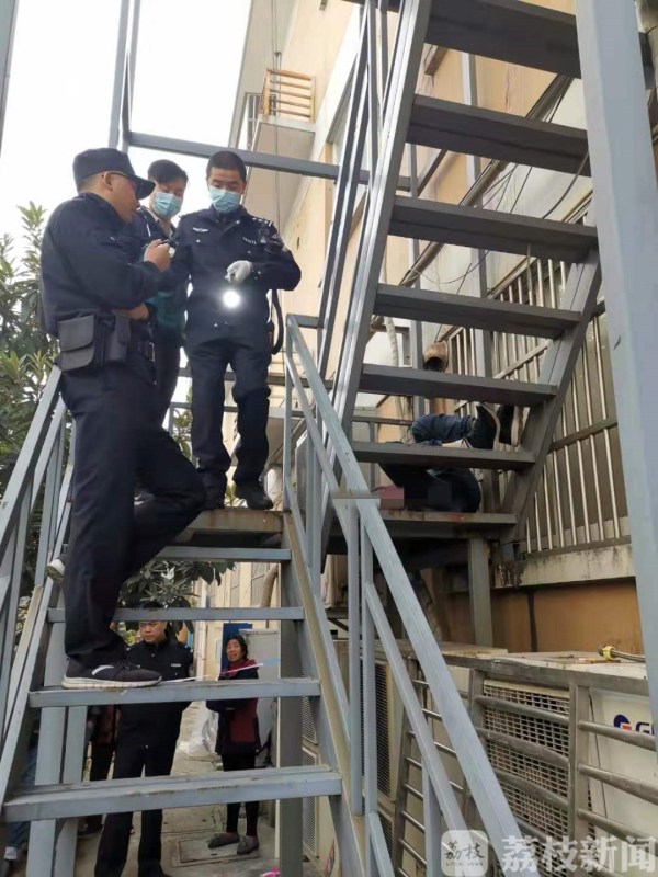 接警后,泰州市公安局高港分局永安洲派出所民警赶到现场,发现一男子仰面倒在网吧外侧的消防通道上,脚在台阶上,疑似上下台阶时倒地,民警随后联系120,经医生确认,该男子已经死亡。