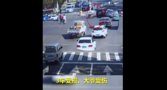 一个闯红灯的行为造成了4车相撞。