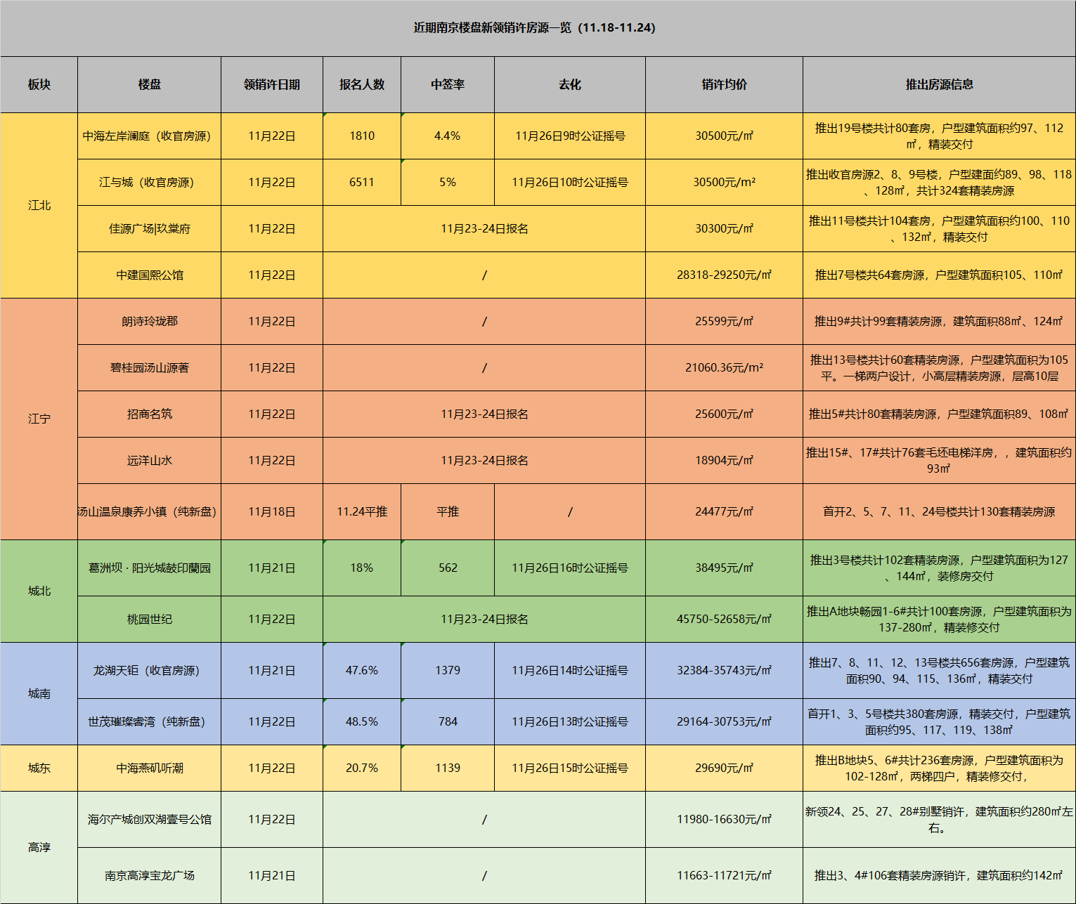 临近岁末,开发商都在“开仓”出货,多盘相遇开启抢人大战的南京楼市将会如何?荔枝楼市本周将陆续更新这些盘的开盘情况。