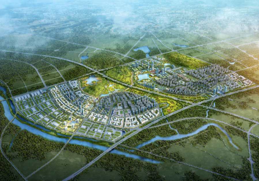 溧水产业新城以“空港实业中枢,科技山水新城”为目标,形成一核两翼,双心多廊的空间结构。以新城生态为核心,宁高高速两侧城市功能区为两翼,东侧科创中心与西侧服务中心为双心,商务核芯区可容纳20万人口。