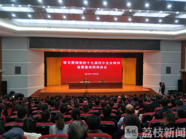 勾凤诚围绕“坚持和完善中国特色社会主义制度,推进国家治理体系和治理能力现代化”主题,从“全会的基本情况和重大意义”、“坚定中国特色社会主义制度自信”、“《决定》提出的总体要求、总体目标和重点任务”以及“贯彻落实好全会精神”等方面,为当地党员干部作辅导报告。