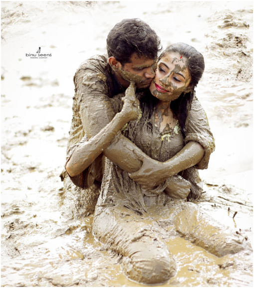 据《印度斯坦时报》24日介绍,这对夫妇是来自印度喀拉拉邦的何塞和阿妮莎,不同于普通年轻人,两人并未选择一些风景胜地作为婚纱照拍摄地,而是把目光投向了一片泥地。