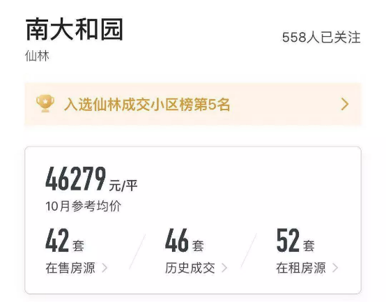 因此,有不少人迫不及待地选择了二手房,板块内的二手房价格也一路上涨,以融信世纪东方邻近的南大和园小区为例,二手房10月报价均价达到了约46279元/㎡,近期成交房源中,成家价格高达46699元/㎡和51985元/㎡,相比之下,融信世纪东方仅26880-32130元/㎡的价格,存在倒挂现象。