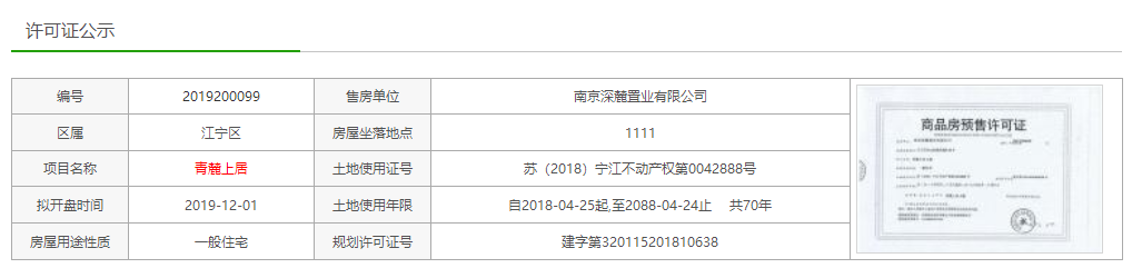 江宁区国际生态新城:深业青麓上居11月26日领取4#销许,共计96套精装房源,建筑面积88㎡、106㎡、118㎡,销许均价26278元/㎡。