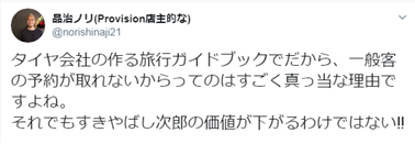 “不接受一般客人的预约。我认为是妥当的理由。本来就不是谁都能去的餐厅,这也是没办法的事吧。”