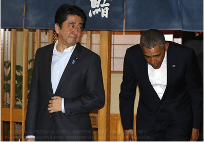 2014年4月23日,日本首相安倍晋三带着奥巴马来到位于银座的数寄屋桥次郎寿司店享用晚餐。(图源:路透社)