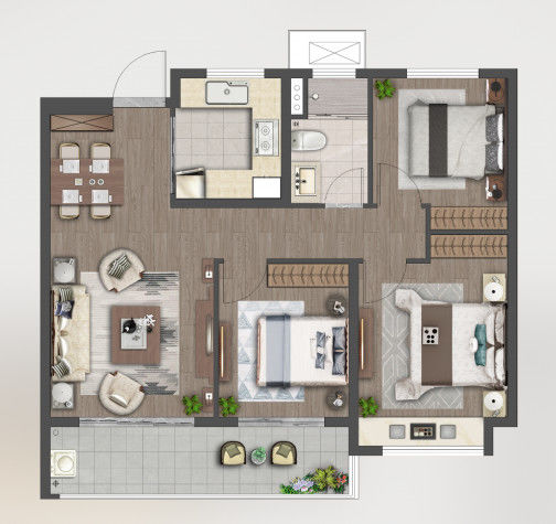 95㎡ 三室两厅一卫