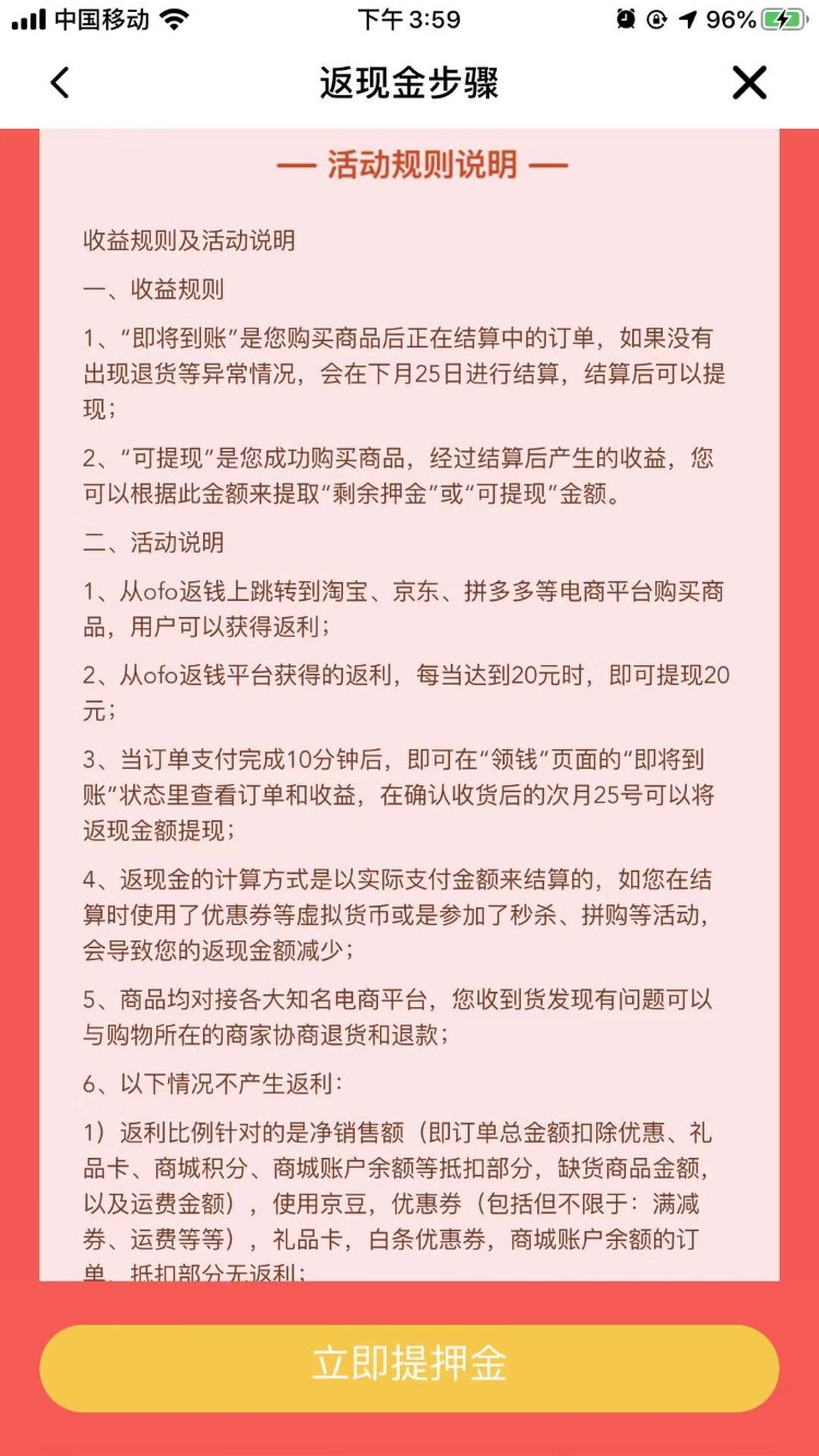 提起ofo,很多人想到的就是退押金难。近期有用户发现,ofo客户端界面上又增退押金新招:天天返钱。“老老实实的退押金,别玩虚的。”不少网友纷纷在微博上对此事发表了自己的看法。而经过记者实测发现,想通过“天天返钱”来退还押金并不容易。