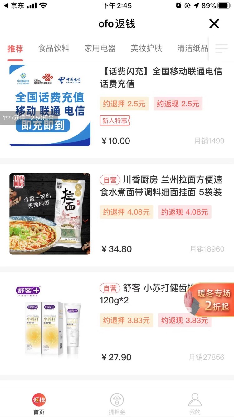 若想通过这个方式得到押金,用户需要先进行授权,即将自己账户上的押金转至ofo返钱,然后在客户端内购买商品,并根据每件商品的金额进行退还押金。“这些商品大多来自第三方购物平台与ofo的小鹿有货出售,但是每件商品的退还额太少了。”正在北京读研二小姚无奈地说。