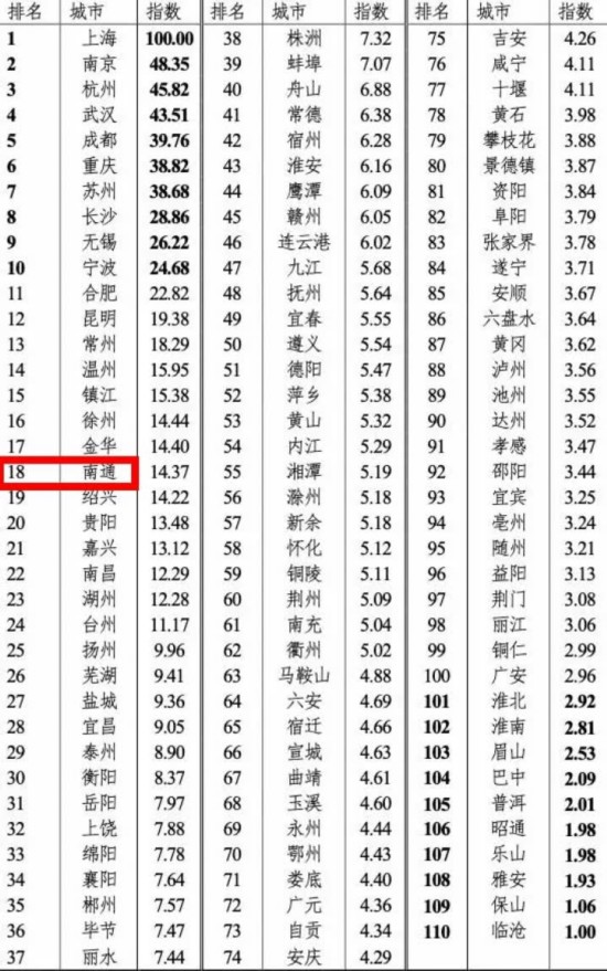 从指数研究报告看,在长江经济带各城市的协同发展能力中,上海连续五年位居榜首,龙头作用显著。与上年相比,各城市协同发展能力差距呈缩小趋势。南通位列第18位。