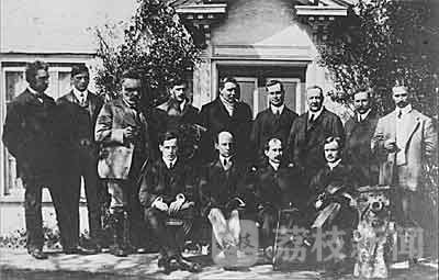 1909年英国皇家航空学会首次颁奖典礼上的飞行探索者们,前排中间两位是莱特兄弟