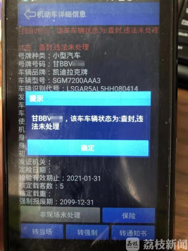 当民警询问驾驶员王某某,这辆“凯迪拉克”车号时,此时,驾驶员王某某才如实回答:甘BBVXXX。民警表示不解,又问王某某为何要悬挂苏K19XXX号牌时,他回答很干脆:躲避监控抓拍。于是,王某某从朋友孙某那里拿了一辆逾期未年审的报废车牌。