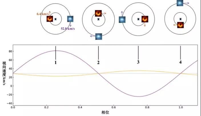 图二 LB-1系统中B型星和黑洞的运动规律和速度曲线