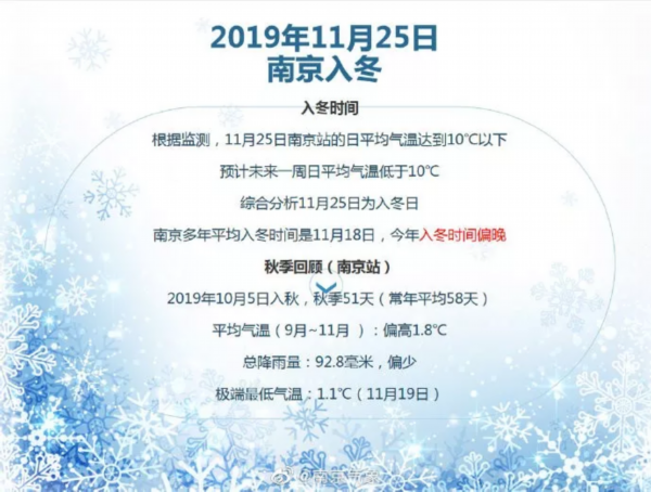 刚刚,南京气象宣布南京从本周一起正式进入冬天了!