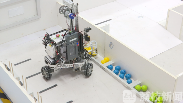 移动机器人项目,需要选手设计传感器、机械配件和结构造型,装备成机器人以后,通过编程来完成指定的任务。这些任务包括,把相应的球在指定的位置抓取以后,放到指定的位置里去。在这个抓球、放球过程中,有爬坡、障碍,绕过这些障碍看机器人抓球的准确性和效率,单位时间里谁抓得多、放得准,这是主要考核的点。