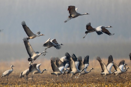 灰鹤们振翅高飞准备离京