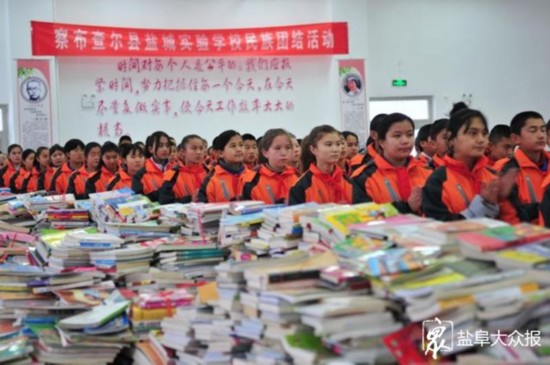 据了解,此次“盐察一家亲,共沐书香情”图书捐赠活动由盐城援疆工作组和盐城团市委共同发起,仅仅一个月时间,便收集到盐城各中小学学生捐赠的共计11万册青少年读物。据盐城援疆工作组相关负责人介绍,接下来,这11万册图书将用于察县39所中小学建设“盐察一家亲图书室”,以及农家书屋项目,预计将惠及2.3万余名察县青少年。