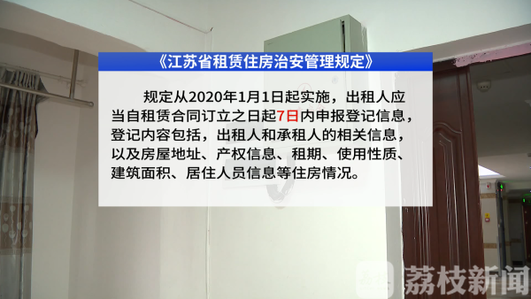 记者了解到,根据日前公布的《江苏省租赁住房治安管理规定》明确,从2020年1月1日起,出租人应当自租赁合同订立之日起7日内申报登记信息,登记内容包括,出租人和承租人的相关信息,以及房屋地址、产权信息、租期、使用性质、建筑面积、居住人员信息等住房情况。此外,要建立相应的管理制度、确定管理人员、登记有关信息、落实治安责任。