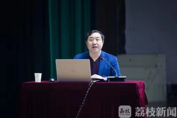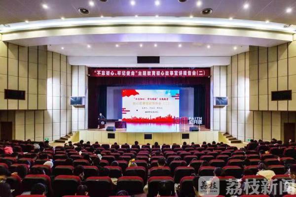 为深入推进“不忘初心、牢记使命”主题教育,教育广大师生从身边人身边事身边典型中感悟党性正能量,南信大邀请淮安市淮安区作家协会主席于兆文、淮安市复兴镇大李村小学校长周文礼两位老师,为师生作初心报告会。作家于兆文是长篇报告文学《天路淮军》作者之一,周文礼校长是长眠在天山脚下的周文飞烈士的弟弟。