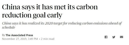 据美联社11月27日报道,中国生态环境部周三发布报告称,中国提前实现了2020年的减排目标。