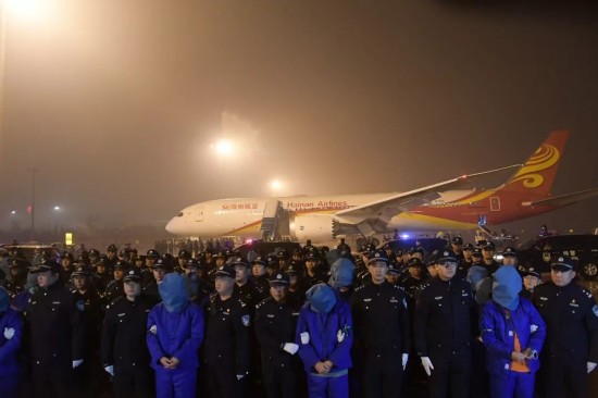 11月30日凌晨2时20分许,一架中国民航包机在天津滨海国际机场平稳降落,75名涉嫌冒充公检法机关实施电信网络诈骗的犯罪嫌疑人从印度尼西亚被天津公安机关成功押解回津,标志着公安机关跨境打击电信网络犯罪再添新战果。