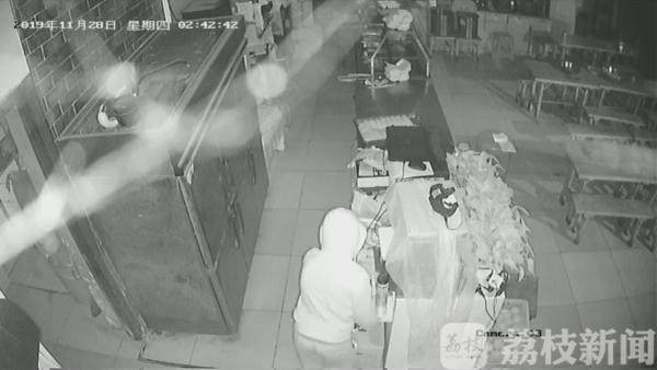 荔枝新闻讯 11月28日凌晨两点多,南通如皋市区的陈师傅快餐店来了一位不速之客,他戴着帽子,罩着口罩,顺着没锁严的门缝就潜入了屋里,只用了五分钟不到的时间,就把收银台的钱箱子给偷走了。