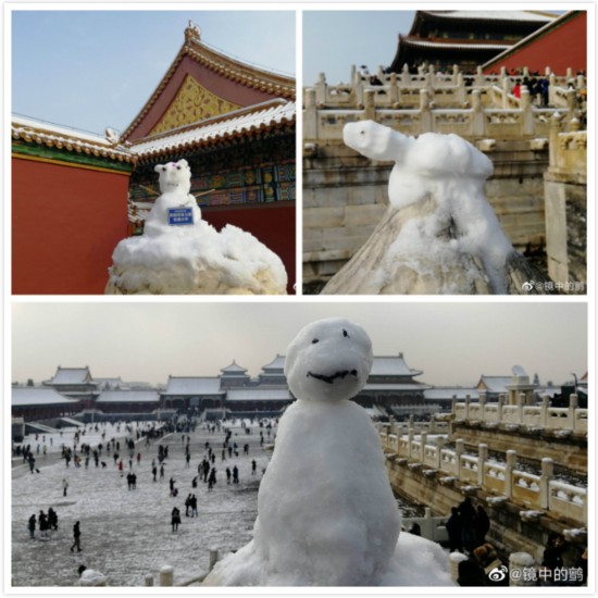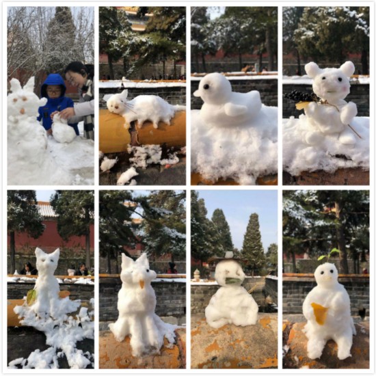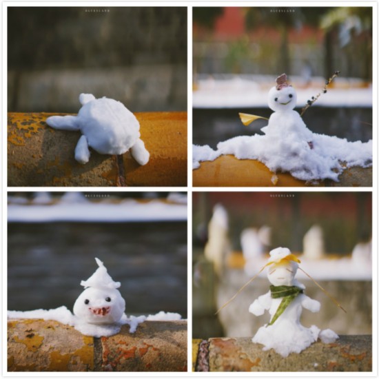 人们都说,一下雪,北京就变成了北平,故宫就变成了紫禁城。而今天,京蜜发现故宫变成了“动物园”,金水河两岸的护栏上,成为故宫堆雪人大赛的现场,随意捧起一团雪球,人人都可参赛。