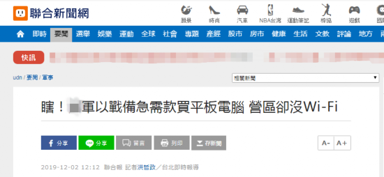[环球网报道]台军被曝以8000万元(新台币,下同)买平板电脑,军营却根本没Wi-Fi(无线局域网),以致平板电脑脱离座台后只能沦为显示器。台湾《联合报》以“瞎!”对此形容。