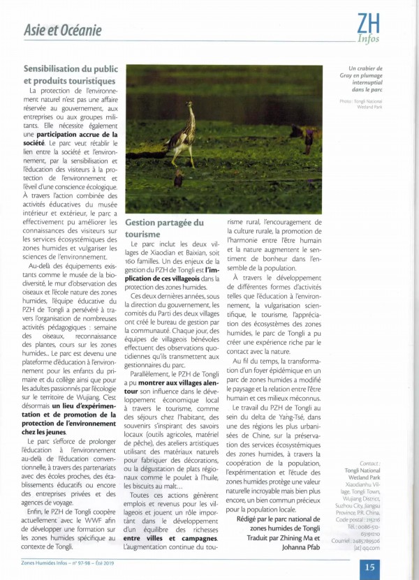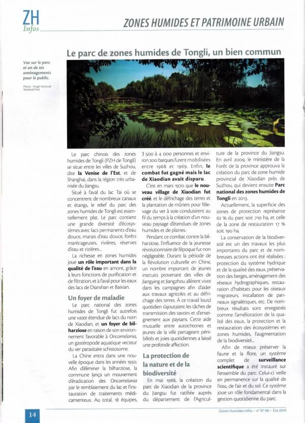 法国《湿地》科学期刊,刊登了同里国家湿地公园关于生态保护 、社区参与、旅游开发的做法!