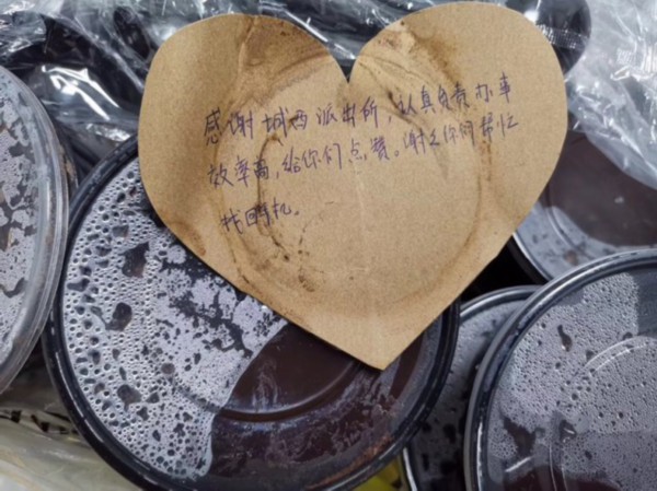 11月25日,昆山市公安局城西派出所的值班民警收到一份暖心外卖。