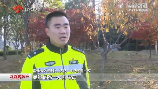 宿迁市交警支队二大队一中队民警钟岳:“每一个人喝酒多少,第二天能消化多少都是和个人体质有关系,都是存在个体差异的,如果说是想驾驶证机动车的话,最好是隔一天再驾驶。”