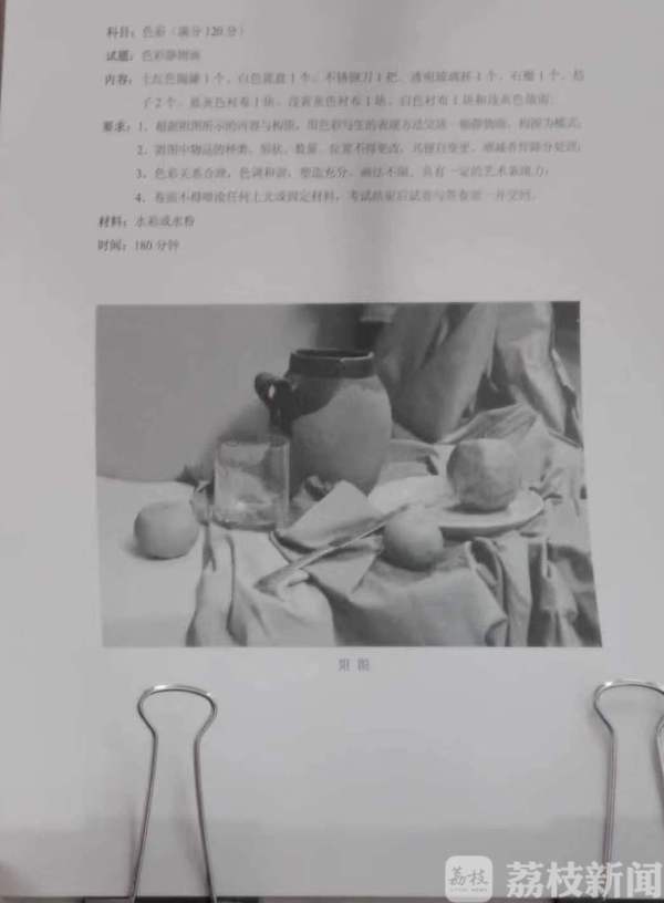 有考生说,色彩有点难,是因为跟平常画的不一样。今年的考题一共只有7件东西,而往年的江苏卷都是十几件东西。还有考生说:“件数少了,反而更难了。因为它分布更散,对构图的要求更高。”