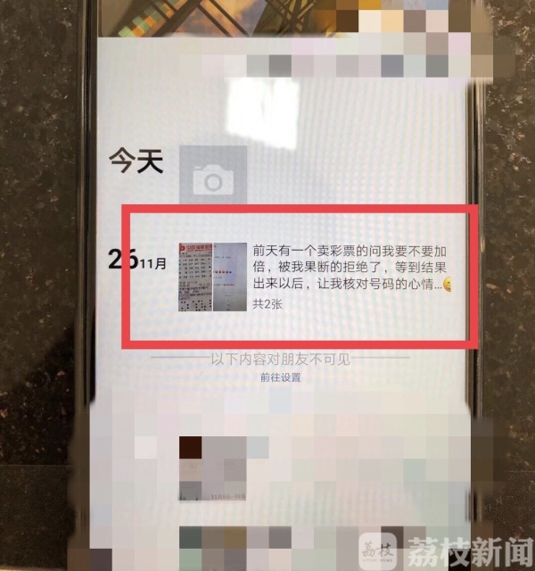 昆山市民周先生是一个老彩民,刚买了一张彩票中了三等奖,奖金3000元。高兴之余,他给彩票拍了一张照片发到了朋友圈,想炫耀一下。但没想到,就因为这张照片,让他的奖金打了水漂。