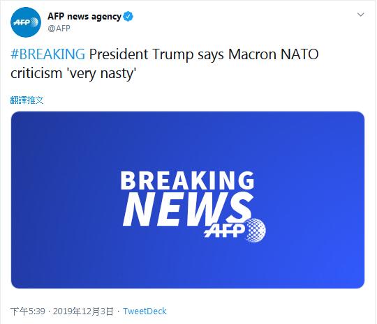 据法新社刚刚消息说,美国总统特朗普称马克龙针对北约的批评“非常恶毒”。