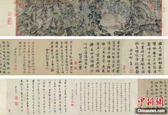 本次上拍的《芝兰室图》是画家为杭州净慈寺古林昌公所作。卷首篆题有“宝石泉壑,芝兰室图”八字,卷中所绘飞瀑流泉、松风万壑。宝石山位于西湖北里湖之北岸,在日光的映照下,满山流霞缤纷,熠熠闪光。