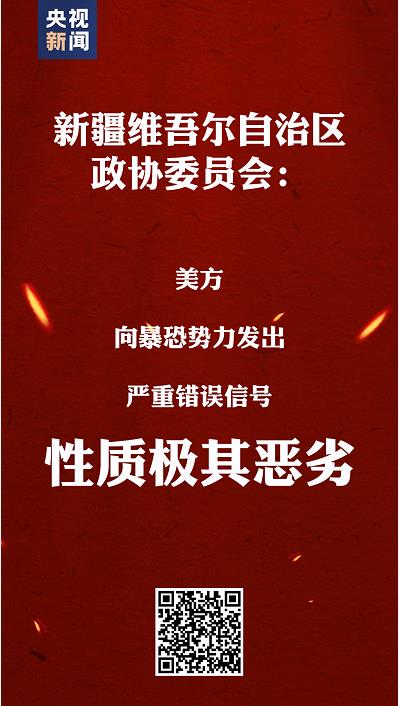 新疆维吾尔自治区政协委员会发表严正声明:该法案以人权为借口,罔顾事实,颠倒黑白,对新疆的人权状况进行歪曲抹黑和无端指责,肆意污蔑新疆反恐和去极端化措施,诋毁我民族宗教政策。极大伤害了中国人民的感情,并向暴恐势力发出严重错误信号,性质极其恶劣。让新疆各族群众认清美国的险恶用心。>>详情