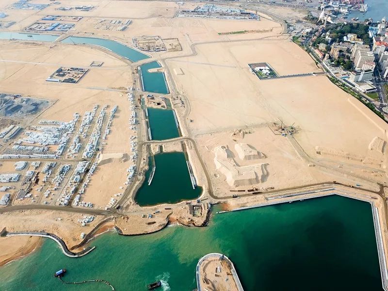 这是斯里兰卡与中国“一带一路”重点合作项目,计划通过填海造地方式在首都科伦坡旁建造一座新城。项目于2014年9月破土动工,目前已完成填海造地工作,建成后将成为南亚地区集金融、旅游、物流、IT等为一体的高端城市综合体。