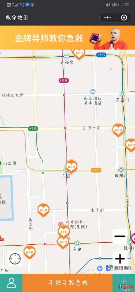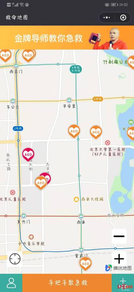 如果想查询离自己最近的AED身处何方,微信小程序“救命地图”就可以办到。急救培训机构“第一反应”就是该程序的开发者,其联合创始人Lisa告诉红星新闻,“救命地图”可以根据用户所在位置,提供最近的AED设备所在位置,并跳转到外部地图程序进行导航。
