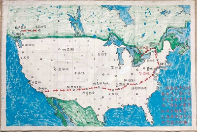 尽管没上过几年学,但徐玉坤一直没停下过学习,不仅给自己“武装”了各个领域的知识,还练就了一手好字,就连智能手机也比同龄人用得“溜”,写文章也挺拿手。每次出行前,他都会自己手绘一张地图,标注好自己的骑行路线,待旅途完成后还会制作骑行手札。