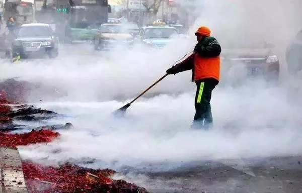 鞭炮、爆竹威力大,碎屑四处飞溅,短时间内都很难完全清扫干净。加重了节日期间环卫工人的负担。碰上有风,环卫工人常常是“追着扫”!下雨天,又厚又粘,更难扫。禁放烟花爆竹,让环卫工人早点回家!