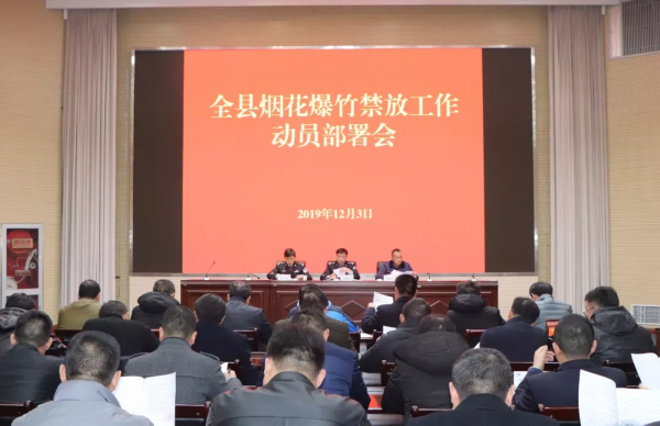 12月3日下午,盱眙县召开全县烟花爆竹禁放工作动员部署会,就烟花爆竹禁燃禁放工作提出要求,并明确从今年12月26日起,在我县主城区及相关单位场所禁止燃放烟花爆竹。