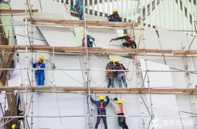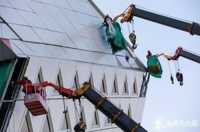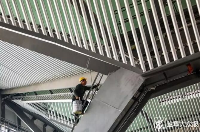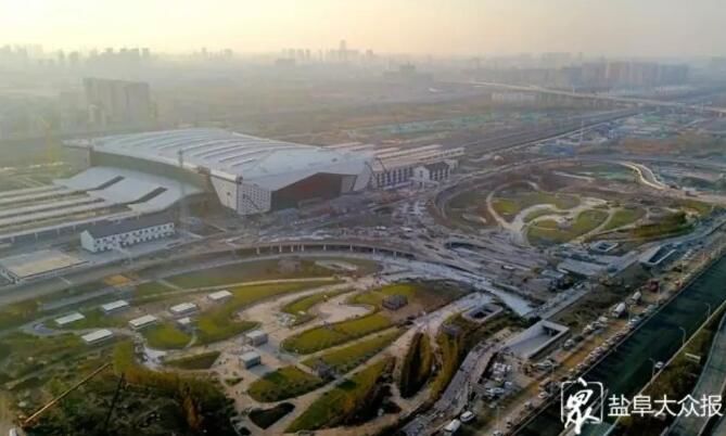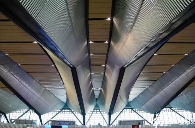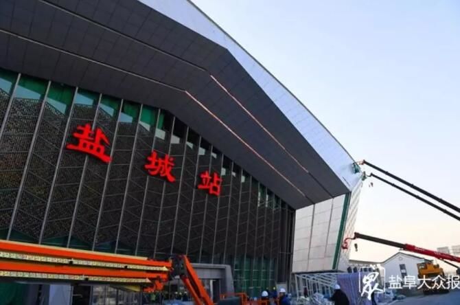 站房主入口采用纯净的玻璃幕墙,外立面采用穿孔铝板,整体线条勾勒出盐城方正大气的门户形象,银白色的表面折射出通榆河畔碧水滩涂和天光云影,与“水绿盐城”的枢纽规划交相辉映,融合自然特色、聚晶地域文化。