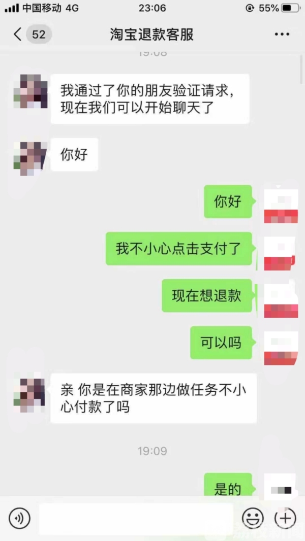 之后武先生继续跟对方联系,对方却说武先生直接转账的操作是错误的,只能添加另外一个微信号申请退款。于是武先生又添加了一个昵称为“淘宝退款客服”的微信号,希望对方能帮他申请退款。所谓的“淘宝退款客服”给了他一个退款失败的截图,声称他的借呗里面还有八万元余额未清,需要将这八万元转到指定的微信账户后才能将两笔钱一同退回。武先生没多想便按照对方的引导进行了操作,将八万元通过微信转了过去。但对方却再次表示退款失败,需要武先生继续转账。至此武先生才反应过来自己是被骗了,遂到禄口新城站派出所报警,此案件目前正在进一步侦办中。