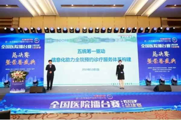 参赛选手张竞秋、宝磊以《五统筹一驱动 信息化助力全院预约诊疗服务体系构建》为主题的案例获得大赛第一主题“科学建立预约诊疗制度”金奖