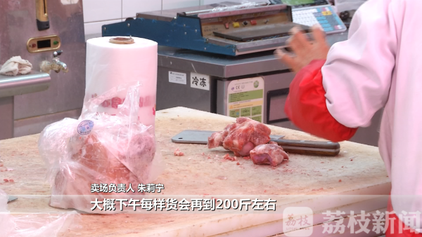 除了超市,这次的储备肉还在集贸市场进行投放。记者来到了在南京市区的进香河集贸市场。工作人员告诉记者,今天上午他们投放了共8个品种,约1000斤的猪肉。现在剩下中段、后腿肉小部分还没有卖完。没买到的市民也不用着急,他们会根据每天的销售情况进行及时的补货。